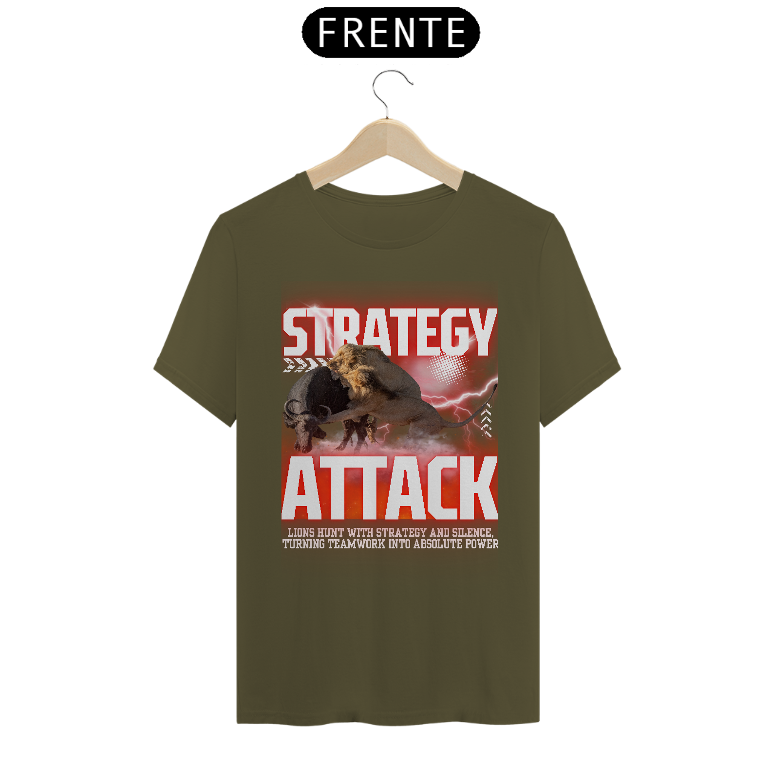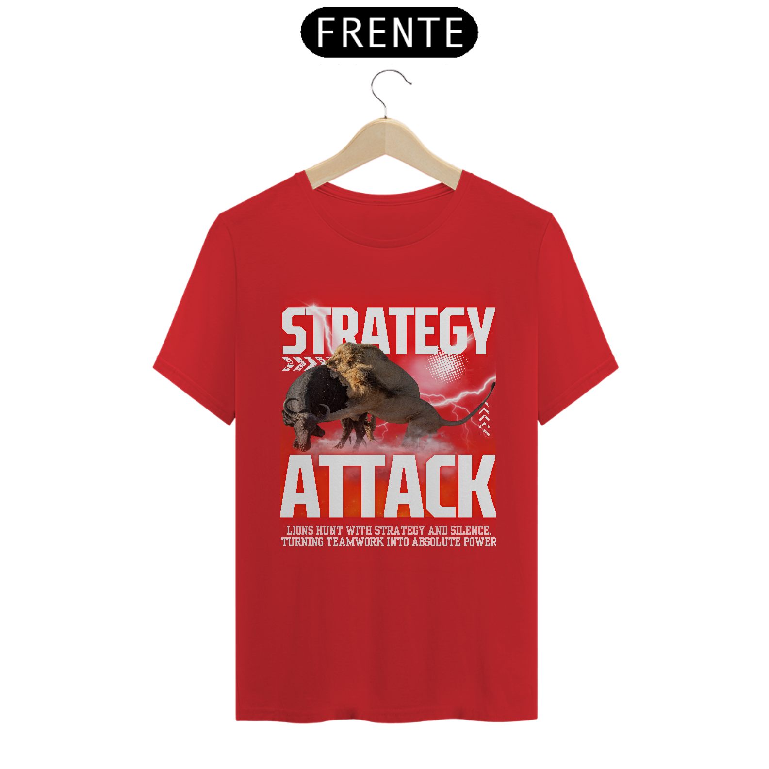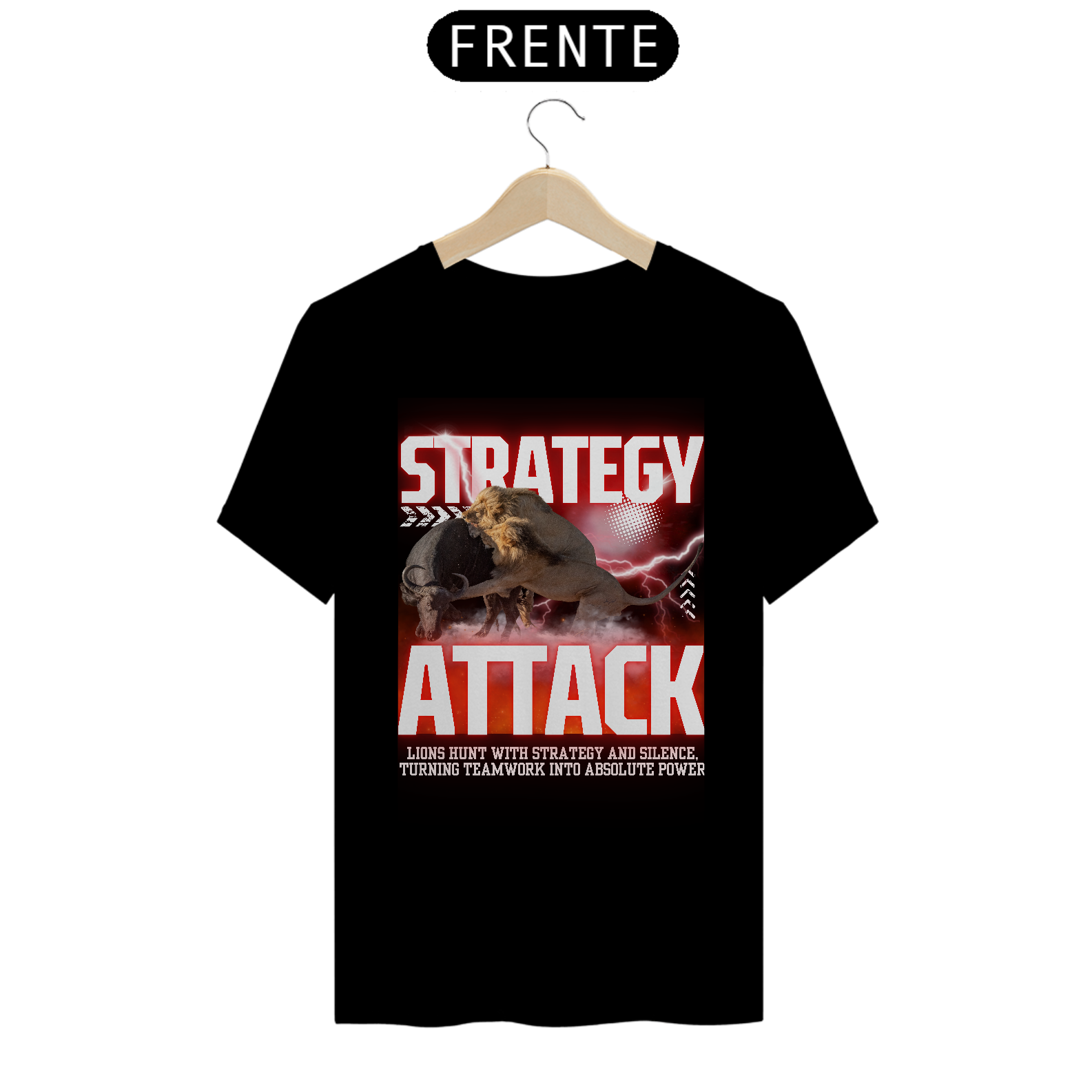 A Strategy Attack representa força, inteligência e domínio. Inspirada na estratégia implacável dos leões na natureza, essa estampa impactante simboliza liderança, trabalho em equipe e poder absoluto.