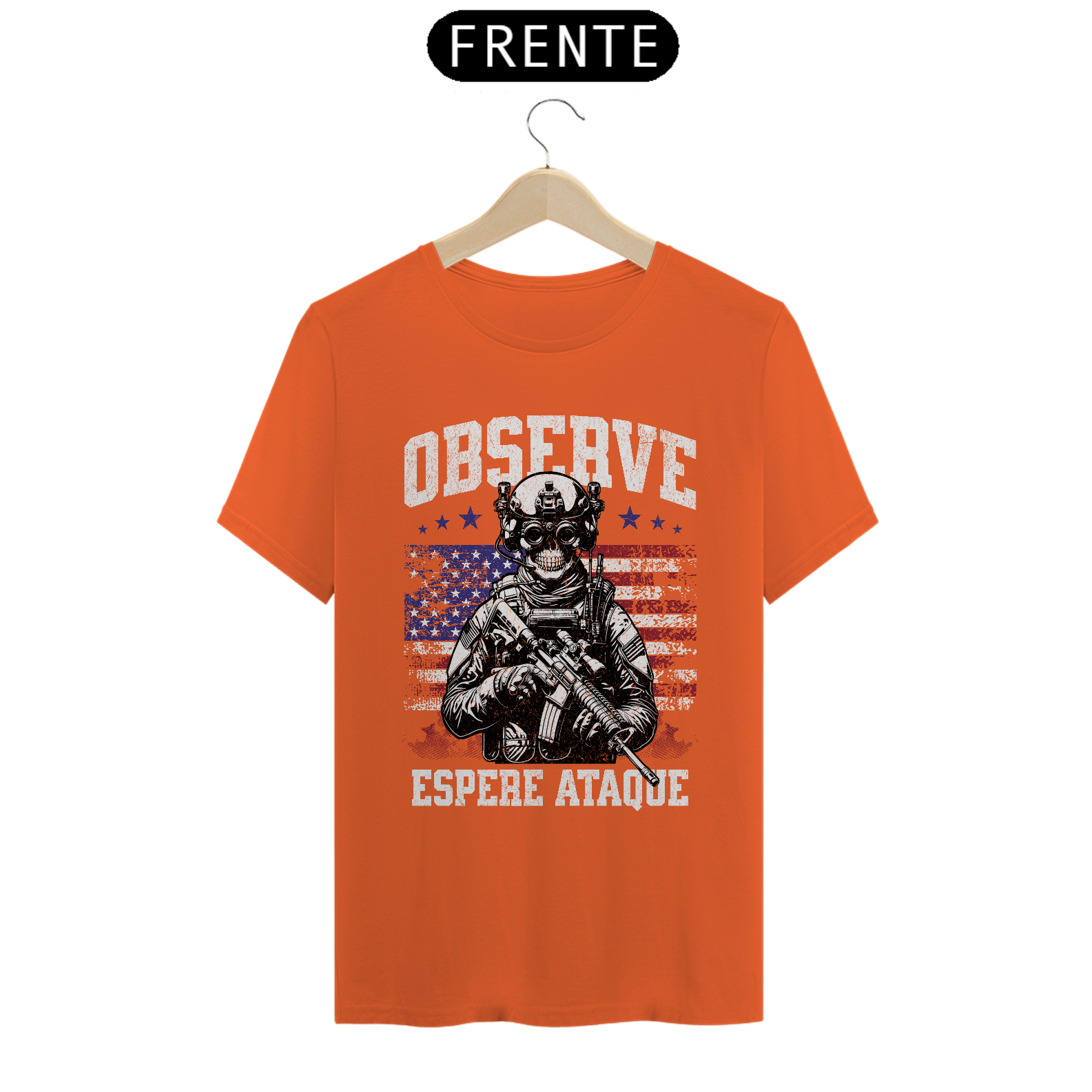 A arte carrega peso — o visual tático, a presença da bandeira desgastada, o crânio que substitui o rosto.